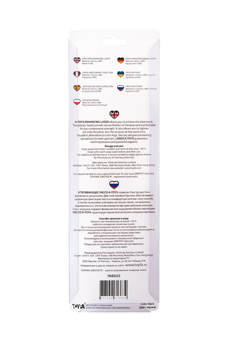 Утягивающее лассо A-Toys позволит быстро достичь желаемого результата. Две пластиковые бусины обеспечивают надежную фиксацию лассо и комфортную для вас силу сжатия, а также позволяют утягивать не только пенис, но мошонку одновременно. Отличная альтернатива эрекционным кольцам. Секс-игрушка подарит феерические ощущения обоим партнерам. Лассо A-Toys гарантирует яркие впечатления и мощные оргазмы.